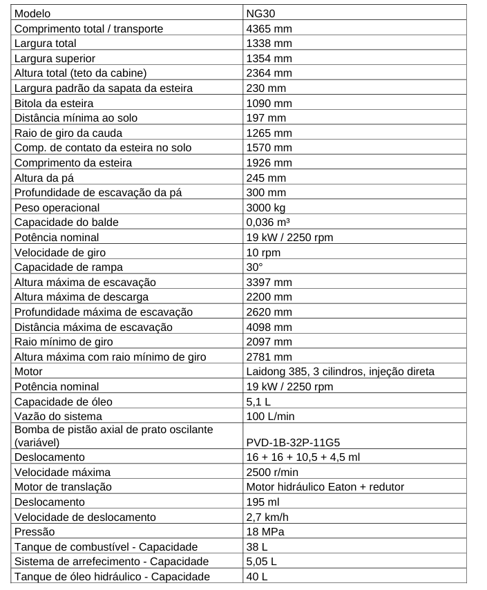 ESPECIFICAÇÕES TÉCNICAS - NG30