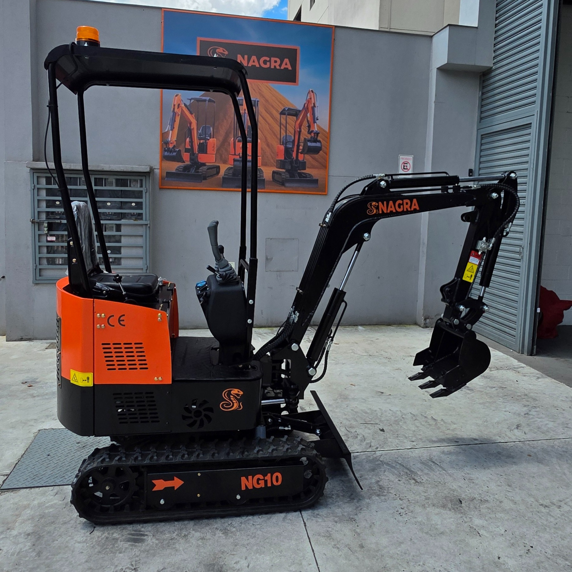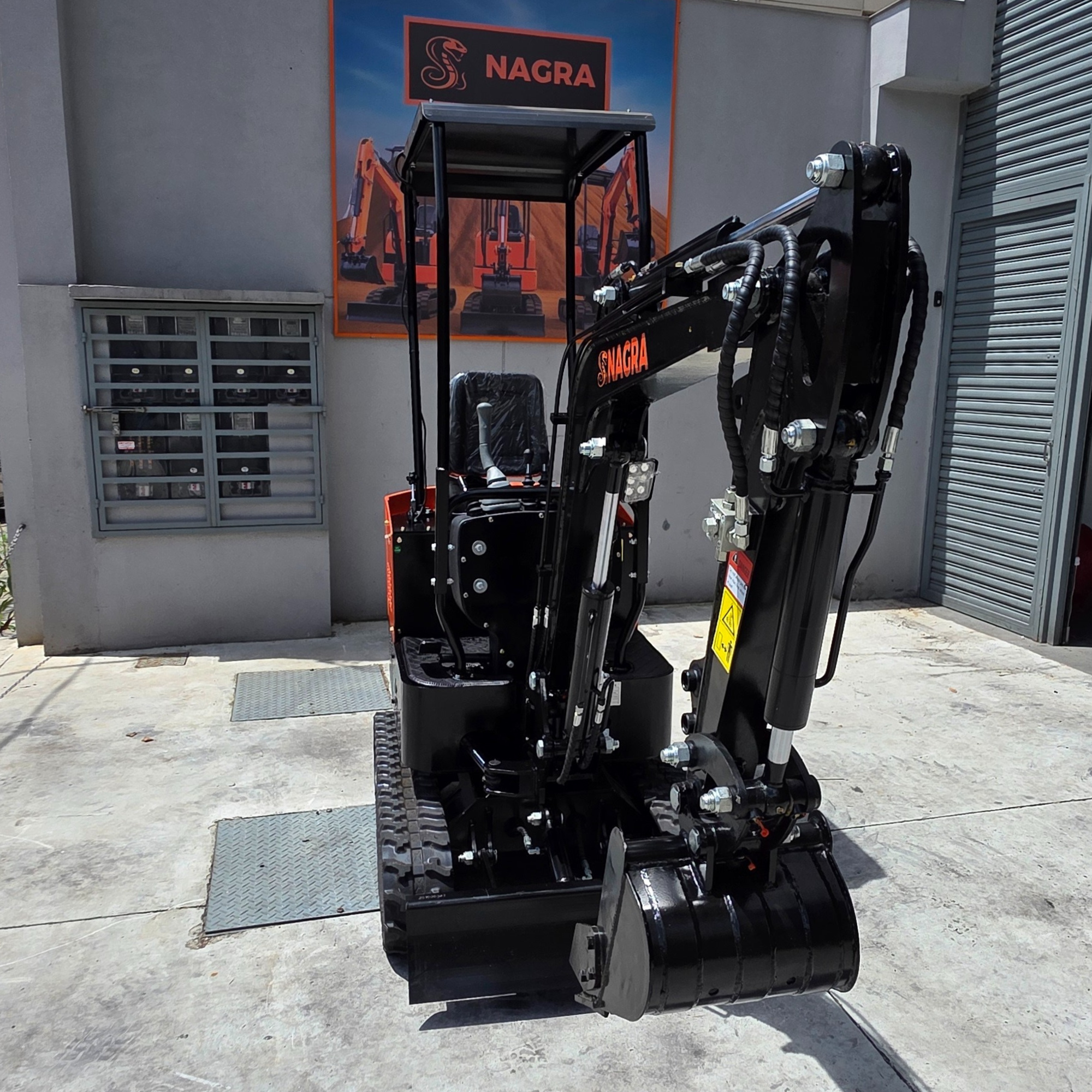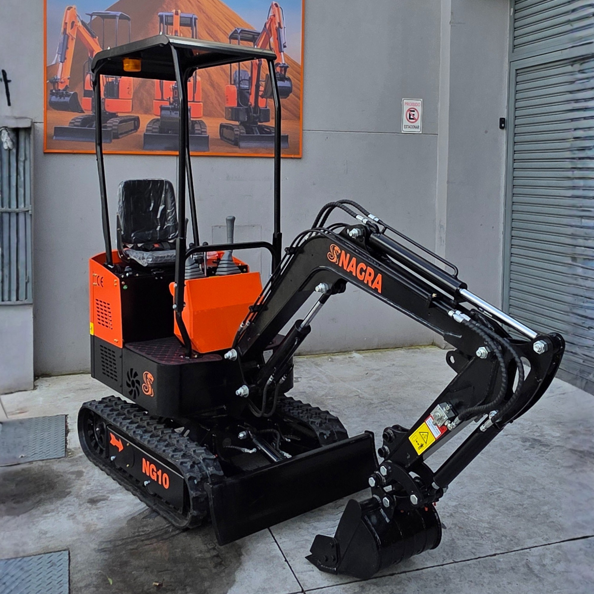 Mini Escavadeira Modelo NG10, perfeita para funções básicas de construção pequenas, como coleta de entulho em lugares apertados, transporte de areia, terra ou concreto, e também perfeito para manutenções de pequena escala.